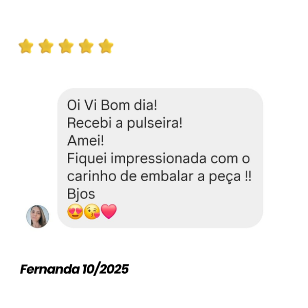 “Quero agradecer pelo lindo colar, eu estava precisando de algo que me deixasse bem, ando muito deprimida, trabalhando muito, não tenho mais tempo pra mim. Ele é um acessório de encher os olhos e alegra o coração, estou muito feliz!!”